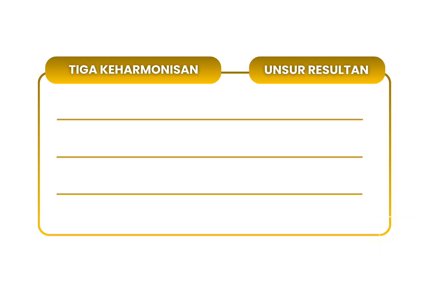 - Barat Laut 2 (Qian " Trigram Ba Gua): 307.5" - 322.5". Unsur Logam.