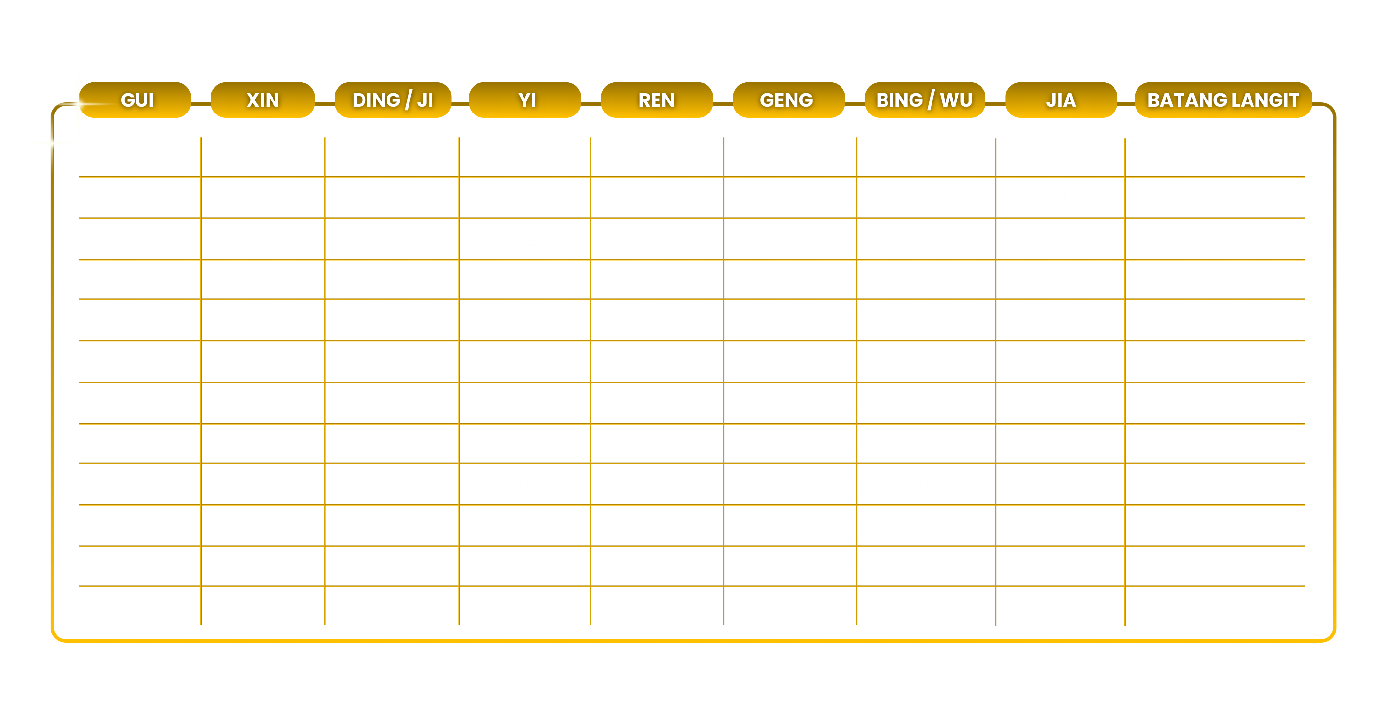 - Barat 1 (Geng " Tonggak Langit): 247.5" - 262.5". Unsur Logam.