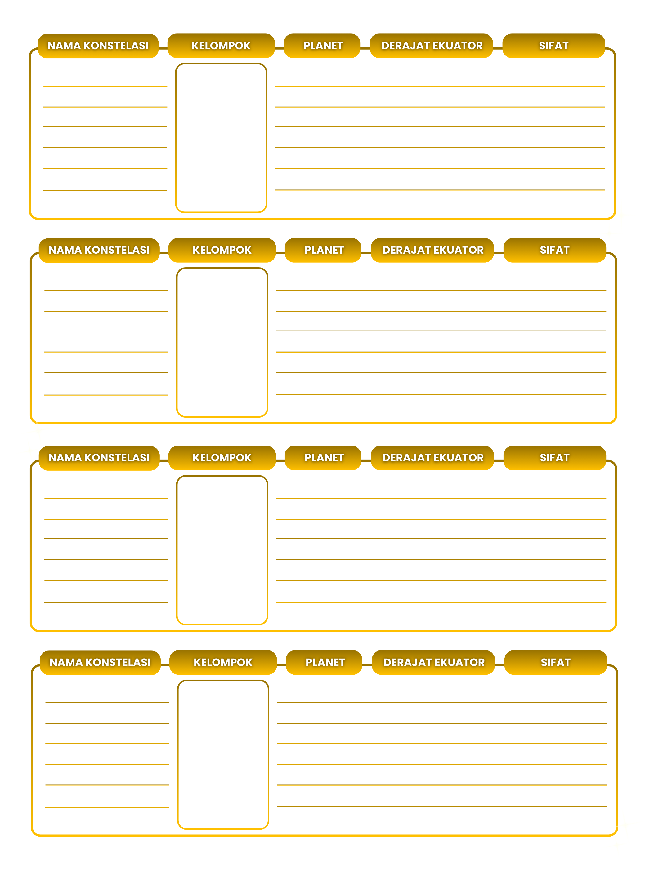 - Utara 3 (Gui " Tonggak Langit): 7.5" - 22.5". Unsur Air.